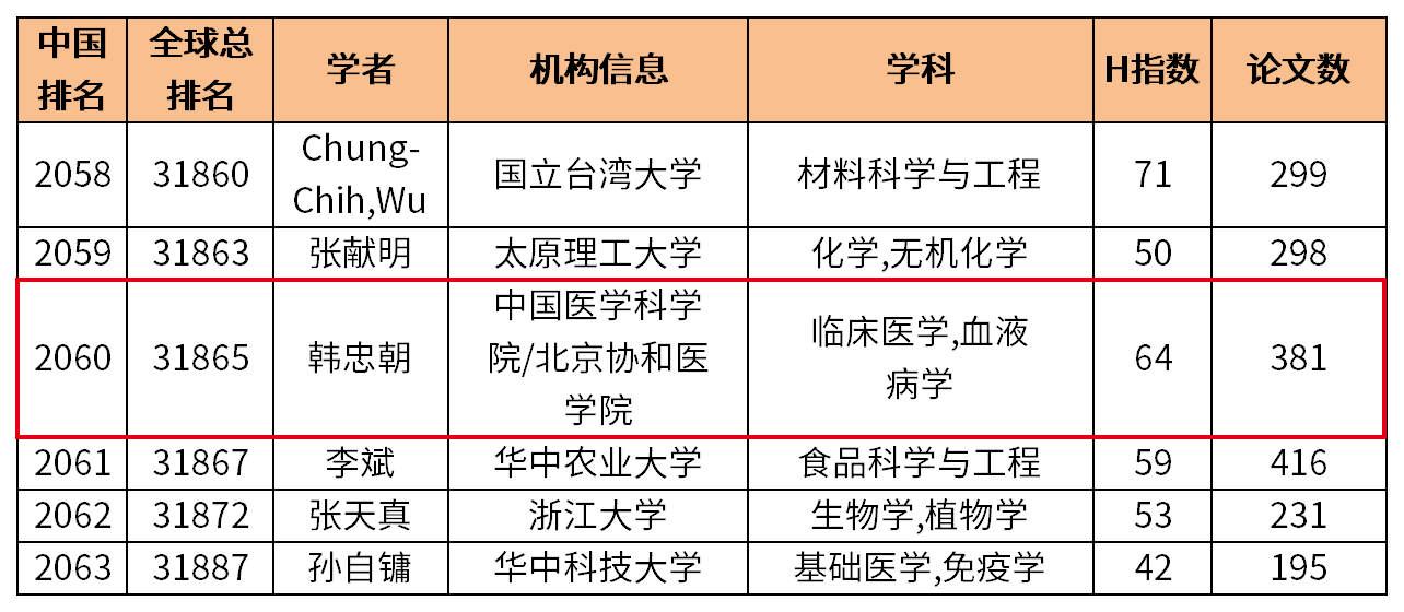 汉氏联合集团董事长韩忠朝院士再次入选“全球顶尖前10万科学家”!